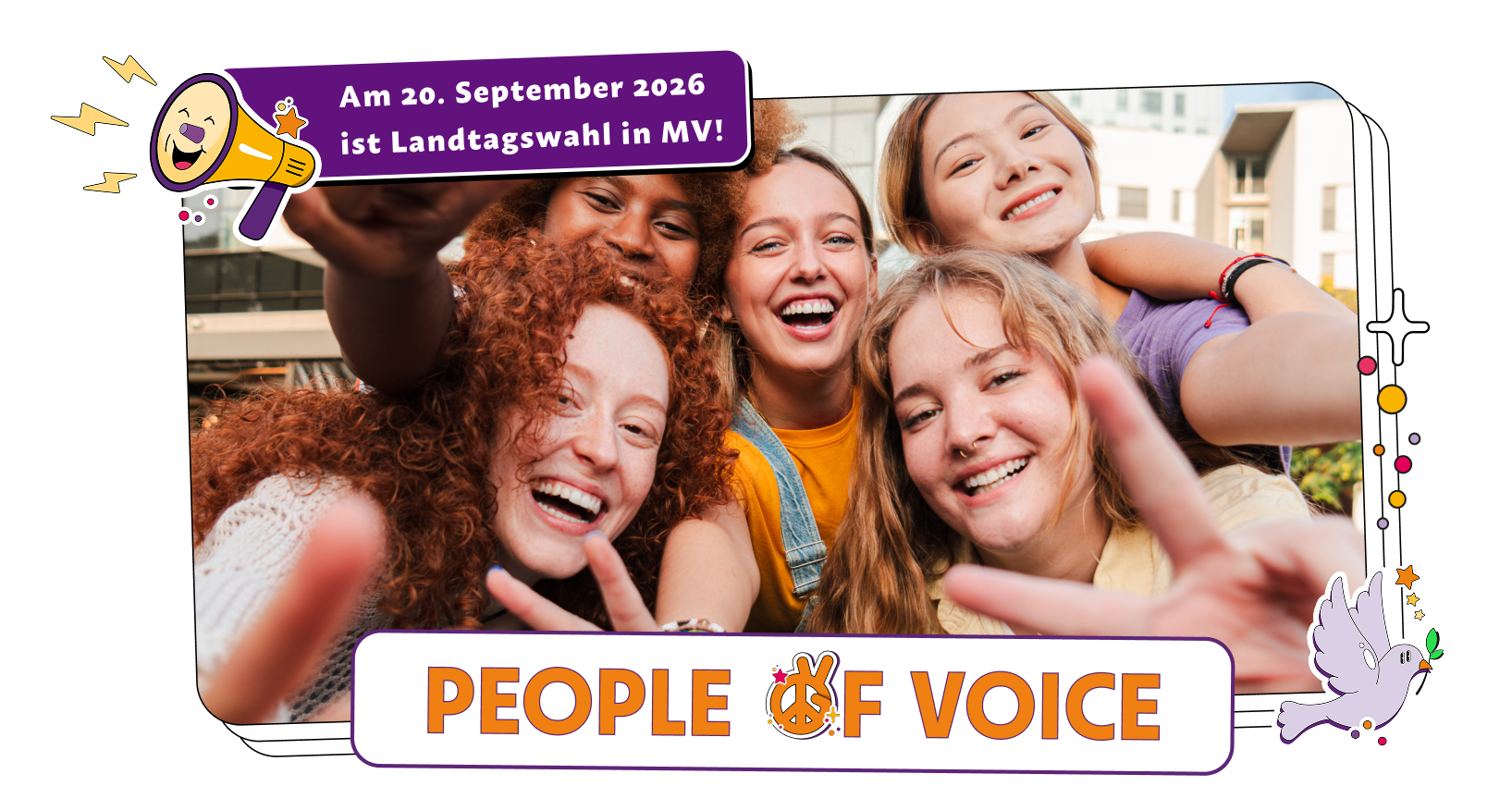 Als People of Voice nutzt du deine Stimme bei der bevorstehenden Landtagswahl. Du machst Demokratie sichtbar und hörbar. Jede Stimme zählt und zusammen sind wir viele. Ob online, auf der Straße oder im Alltag: Wir bringen Menschen zusammen, die für Freiheit, Vielfalt und Mitbestimmung stehen.